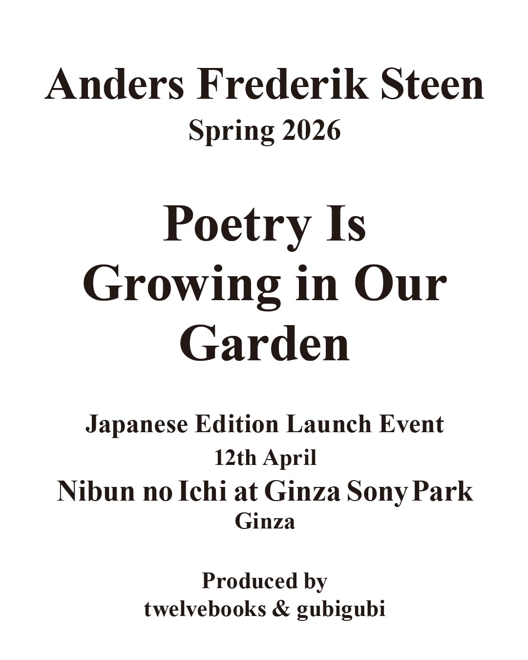 ション、さらに今回は、「Poetry Is Growing In Our Garden」日本語版の出版を記念し、当日はサイン本の販売を行うほか、SEEALLとのコラボレーションによるTシャツも限定数販売いたします。